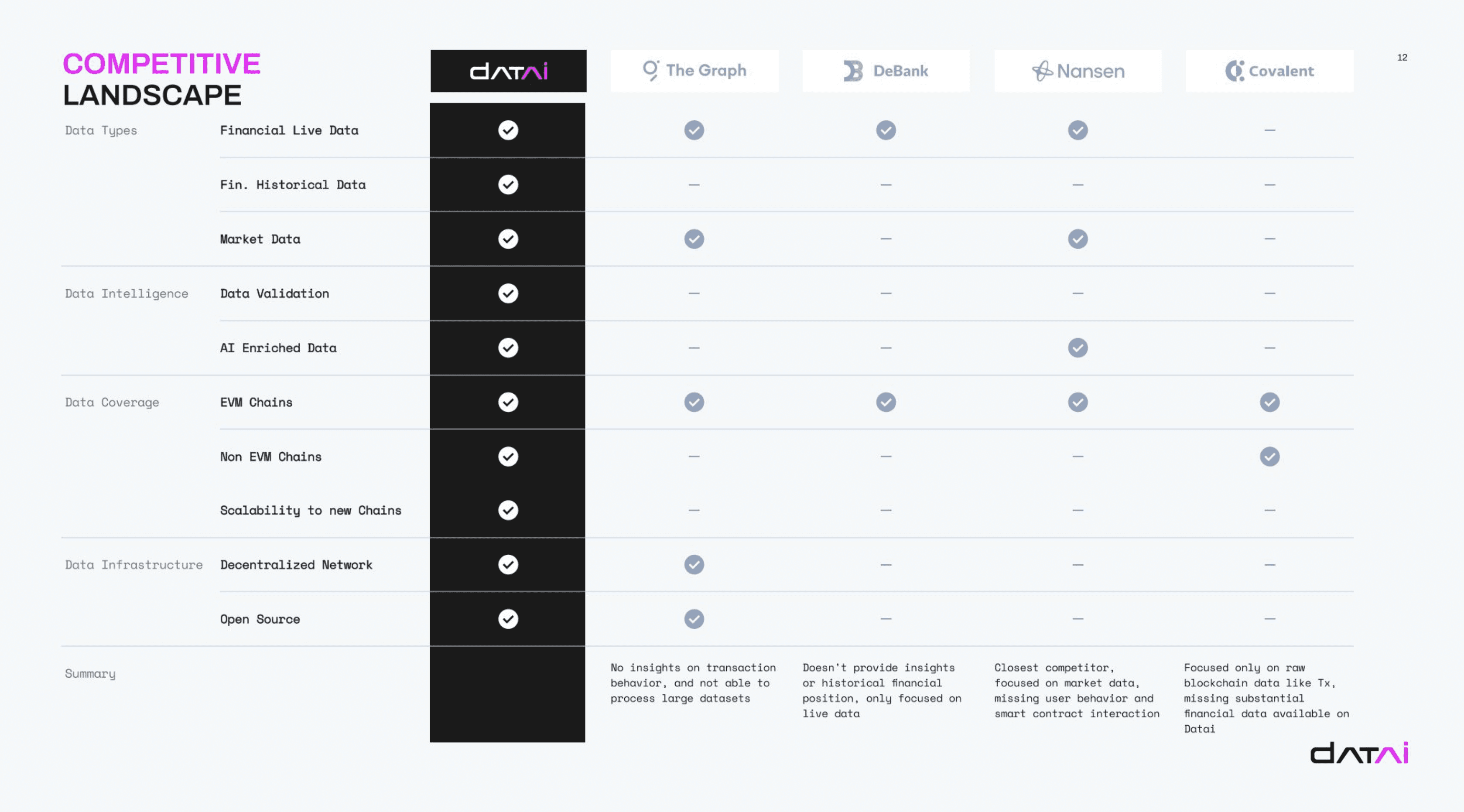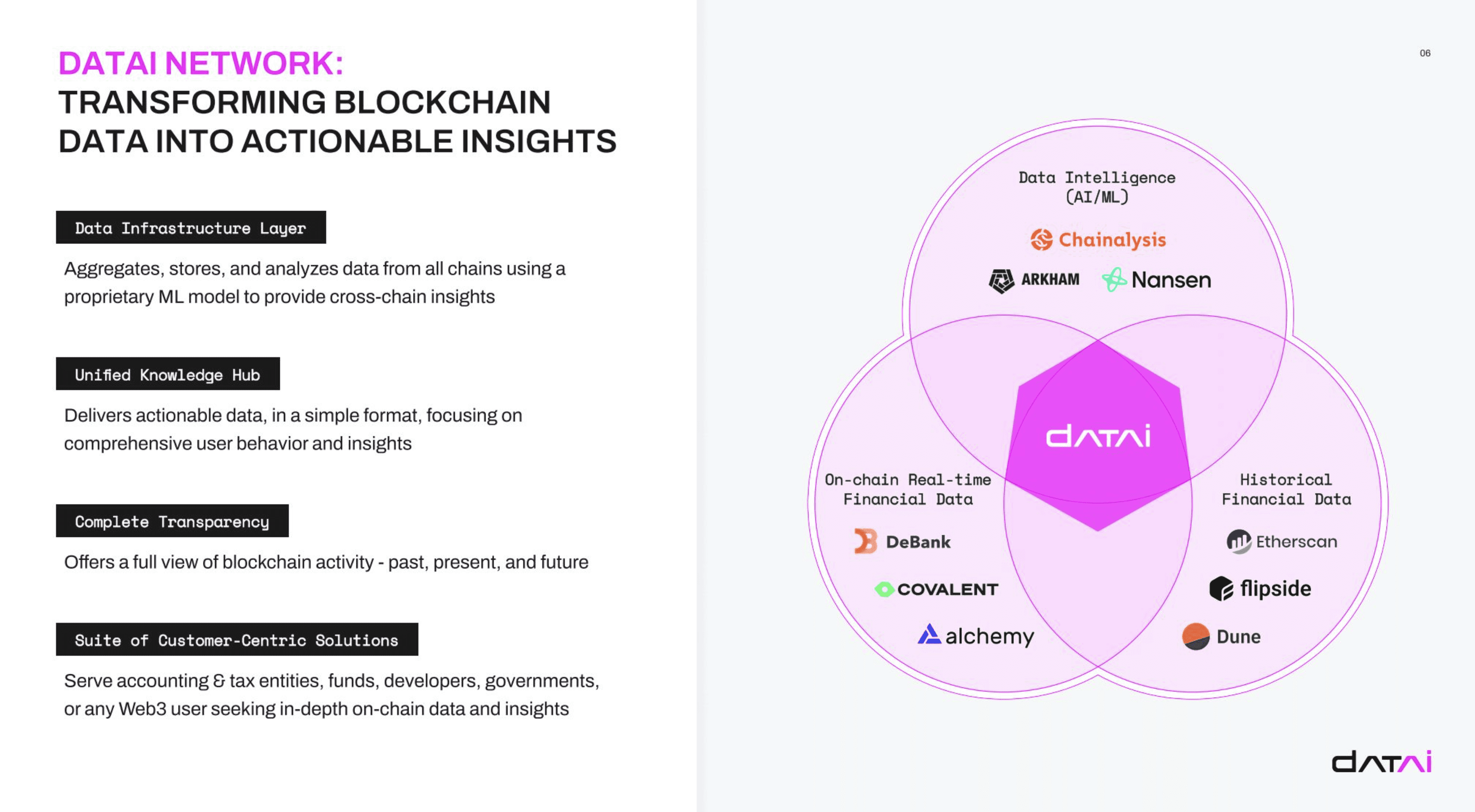 Datai Network is at the forefront of blockchain analytics, setting a new standard by transforming raw, fragmented on-chain data into actionable, AI-ready intelligence. Designed with Web3 developers, enterprises, and investors in mind, Datai Network offers groundbreaking features such as real-time insights, AI-enhanced analytics, and unparalleled scalability—making it the ultimate solution for navigating the complex blockchain landscape.